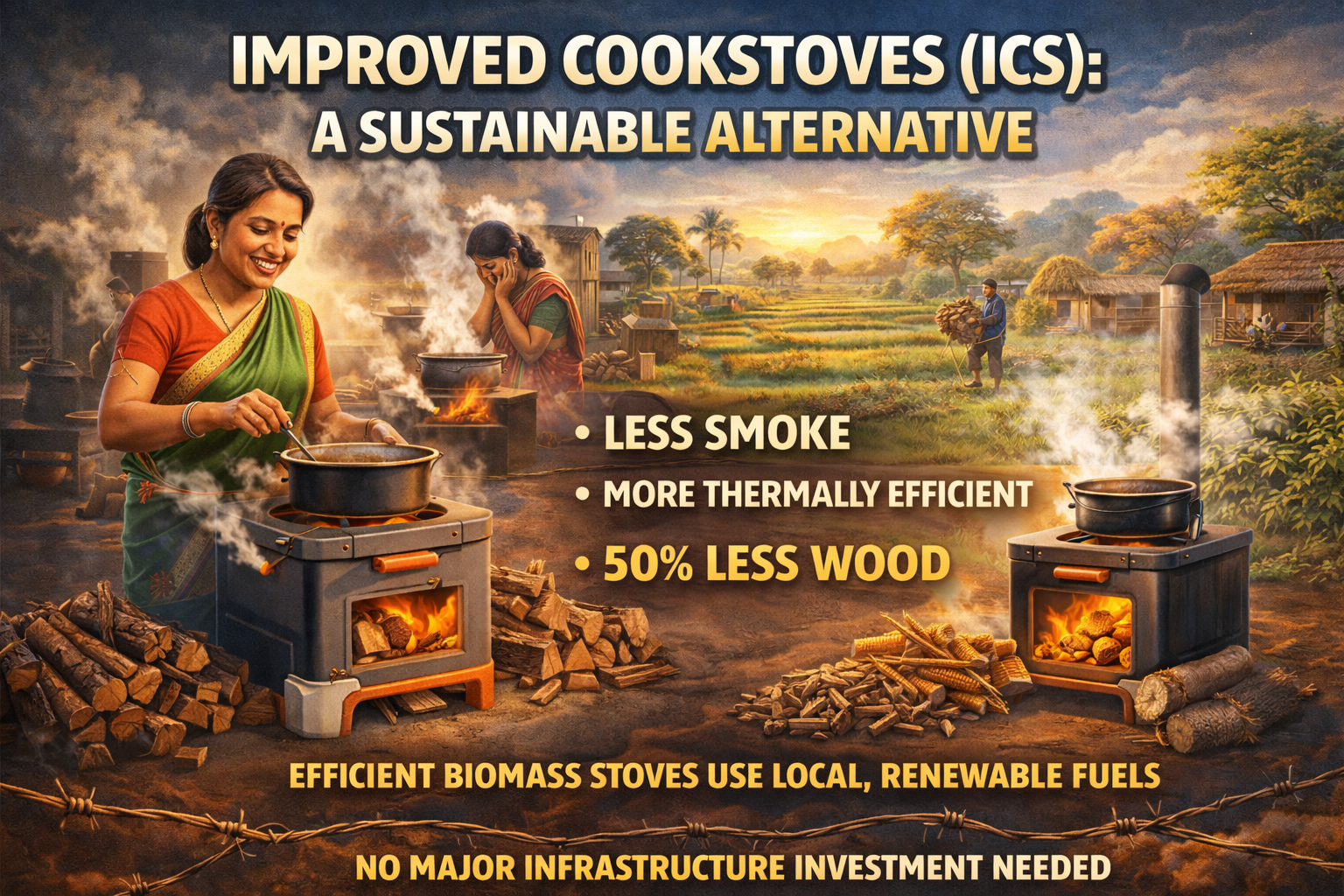 By lowering smoke, boosting thermal efficiency, and using less wood by more than 50%, Improved Cookstoves (ICS) provide a sustainable alternative. Because local, renewable fuels (wood and agricultural waste) are easily accessible, widespread use of efficient biomass stoves does not need significant infrastructure investment.