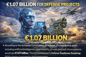 According to the European Commission, 57 defense projects in vital areas including artificial intelligence, cybersecurity, drones, and anti-drone systems would get 1.07 billion euros. The EU Commission’s Defense Readiness Roadmap 2030 is being supported by the investments.