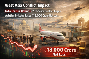 According to a report on the impact of the West Asia conflict released on Thursday, India’s inbound tourist traffic has decreased by 15-20% since the conflict began, and the aviation industry is facing an estimated net loss of 18,000 crore due to disruptions caused by the conflict.