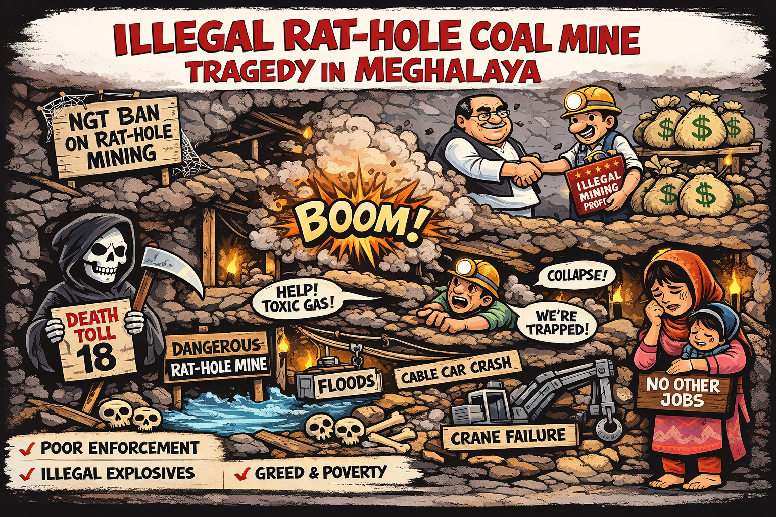 Workers died in Meghalaya’s rat-hole coal mines, after the NGT banned the practice in 2014.