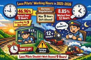 According to a railway loco pilots’ union, 46.96% of engine drivers were deployed for more than nine hours, while 8.85% worked more than twelve hours in a row in 2025–2026. According to railway regulations, a loco pilot is not permitted to work more than nine hours in a row.