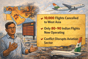 Since the start of the conflict in the area, 10,000 Indian airlines have canceled flights to West Asia, according to a top civil aviation ministry official on Tuesday. According to Asangba Chuba Ao, Joint Secretary of the Ministry of Civil Aviation, there are now just about 80–90 Indian carriers operating flights to West Asia.